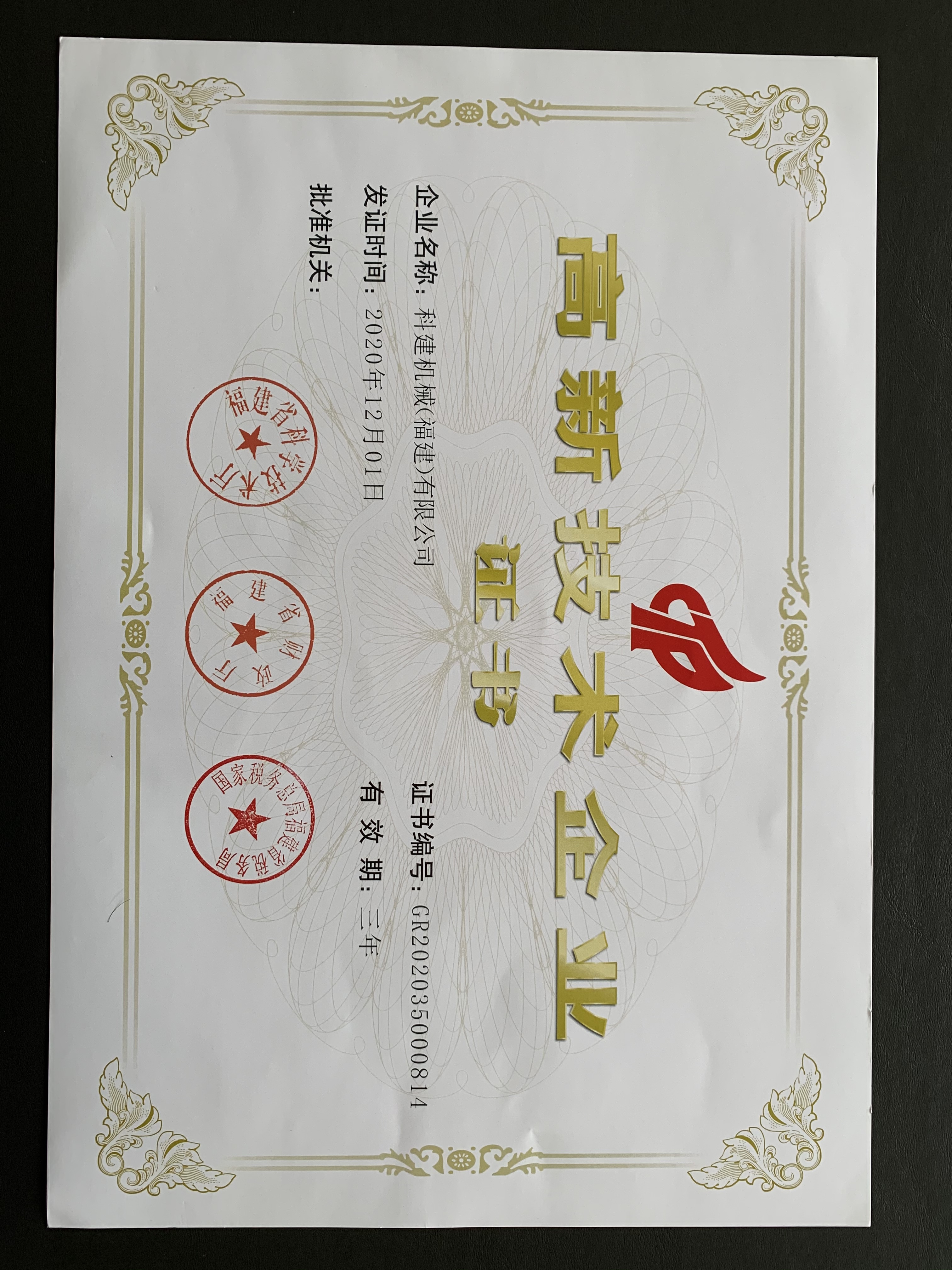 省高新技術(shù)企業(yè)證書